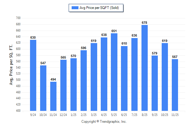 November 2025 Average Sold Price per Square Footage was Depreciating**