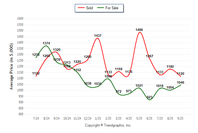 September 2025 Average For Sale Price was Appreciating and Average Sold Price was Depreciating**