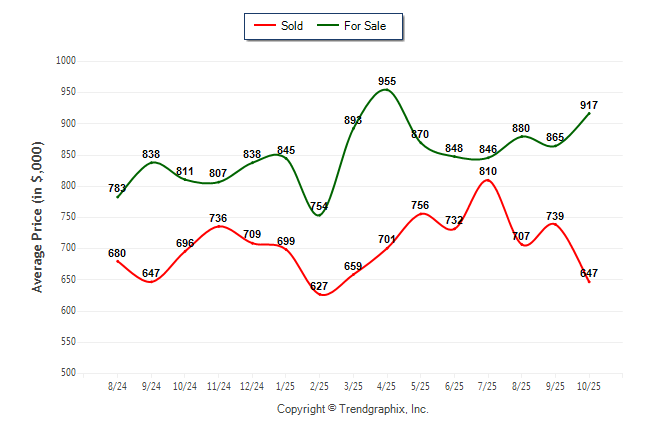 October 2025 Average For Sale Price was Appreciating and Average Sold Price was Depreciating**