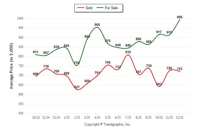 December 2025 Average For Sale Price was Appreciating and Average Sold Price was Neutral**