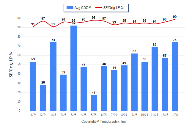 January 2026 Average Continuous Days on Market trend was Rising and Sold/Original List Price Ratio was Rising**