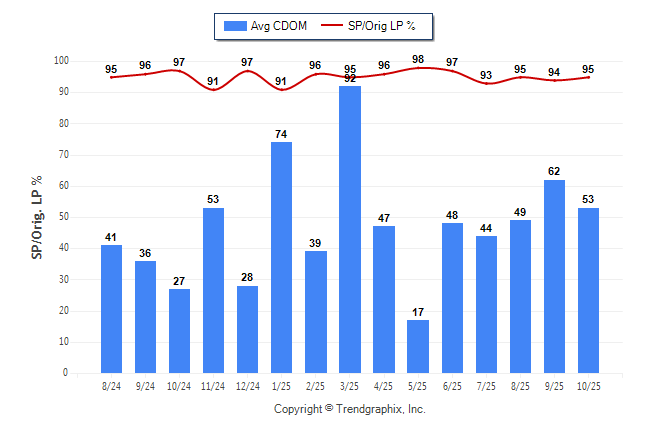 October 2025 Average Continuous Days on Market trend Remains Steady and Sold/Original List Price Ratio Remains Steady**