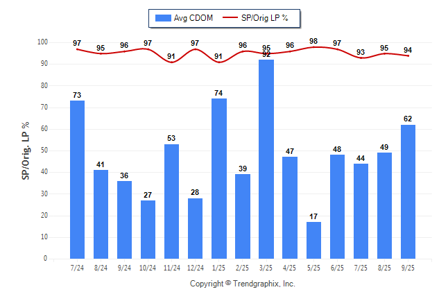 September 2025 Average Continuous Days on Market trend was Rising and Sold/Original List Price Ratio Remains Steady**