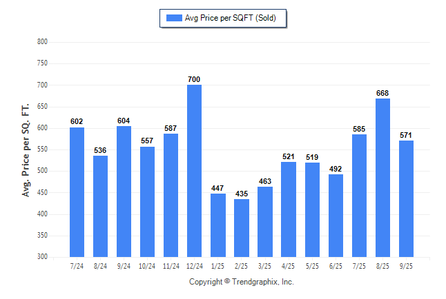 September 2025 Average Sold Price per Square Footage was Neutral**