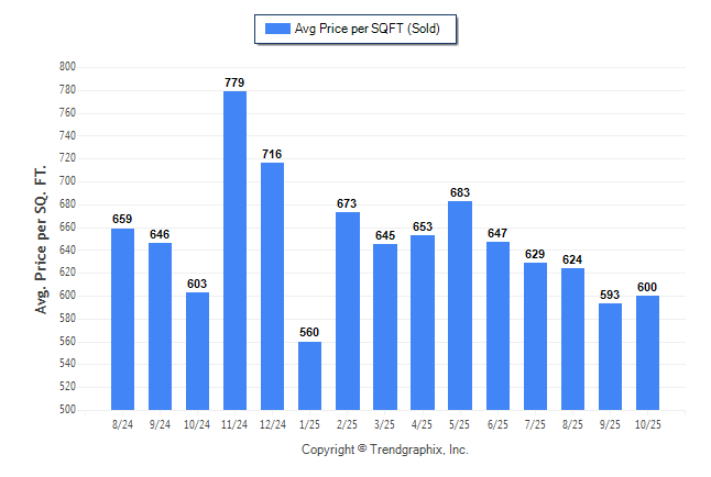 October 2025 Average Sold Price per Square Footage was Neutral**