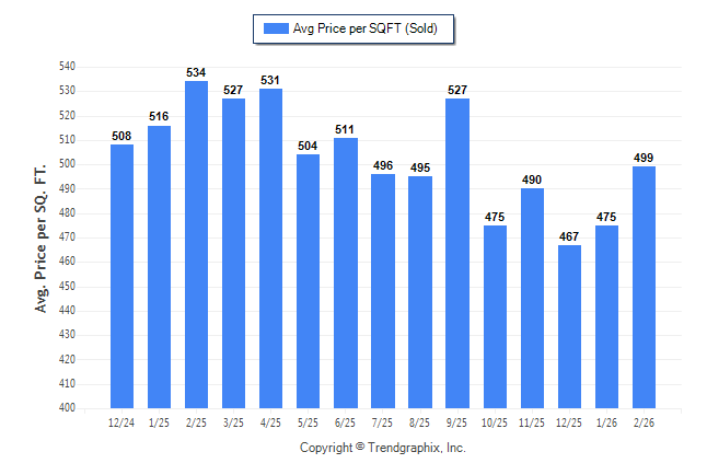 February 2026 Average Sold Price per Square Footage was Neutral**