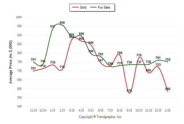 January 2026 Average For Sale Price was Neutral and Average Sold Price was Depreciating**