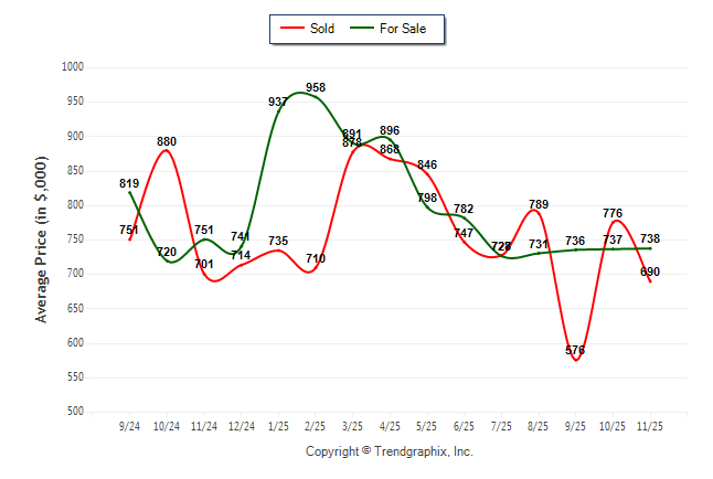 November 2025 Average For Sale Price was Neutral and Average Sold Price was Neutral**