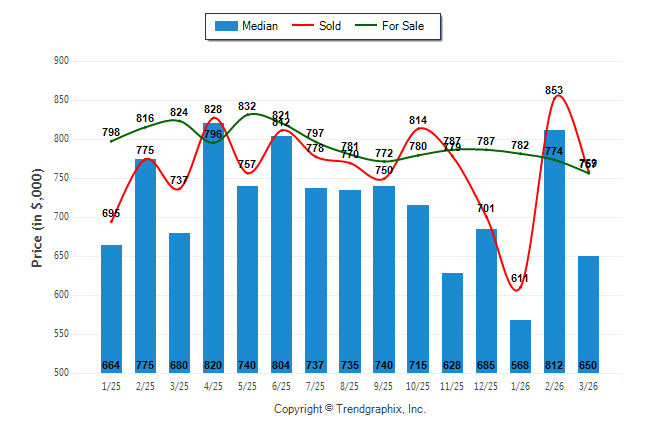 March 2026 Median Price was Neutral, Avg. For Sale Price was Depreciating, and Avg. Sold Price was Neutral**