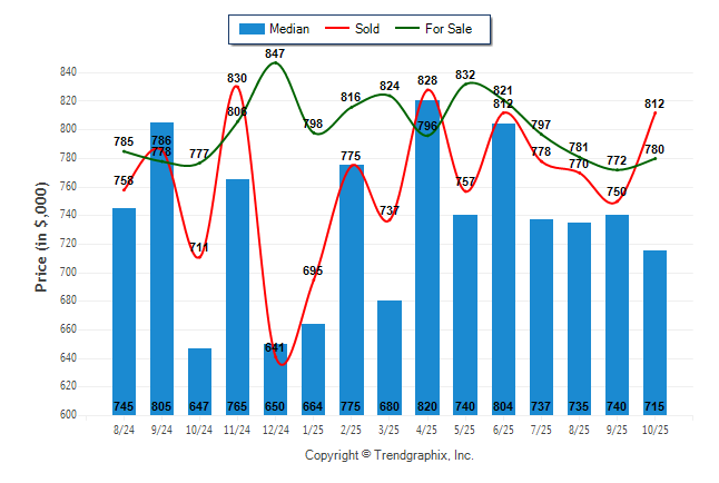 October 2025 Median Price was Depreciating, Avg. For Sale Price was Neutral, and Avg. Sold Price was Neutral**