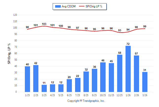 March 2026 Average Continuous Days on Market trend was Falling and Sold/Original List Price Ratio was Rising**