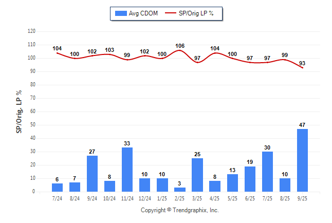 September 2025 Average Continuous Days on Market trend was Rising and Sold/Original List Price Ratio was Falling**