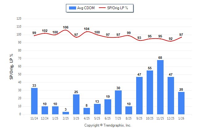January 2026 Average Continuous Days on Market trend Remains Steady and Sold/Original List Price Ratio Remains Steady**