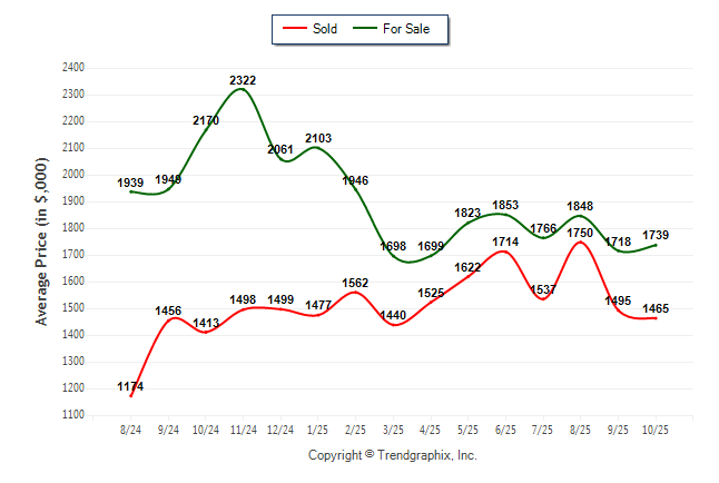 October 2025 Average For Sale Price was Neutral and Average Sold Price was Depreciating**