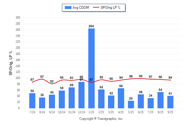 September 2025 Average Continuous Days on Market trend Remains Steady and Sold/Original List Price Ratio was Falling**