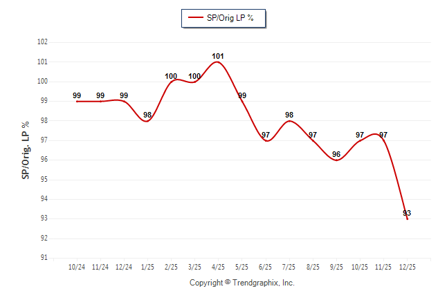 December 2025 Sold/Original List Price Ratio was Falling**