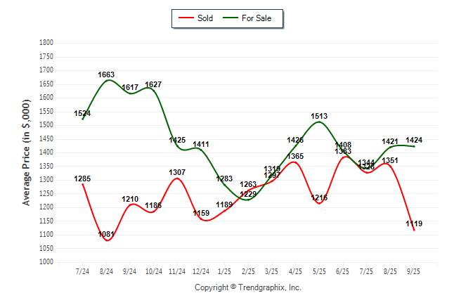 September 2025 Average For Sale Price was Neutral and Average Sold Price was Depreciating**