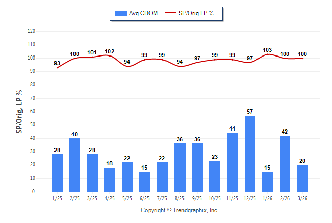 March 2026 Average Continuous Days on Market trend Remains Steady and Sold/Original List Price Ratio Remains Steady**