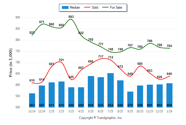 January 2026 Median Price was Appreciating, Avg. For Sale Price was Neutral, and Avg. Sold Price was Neutral**