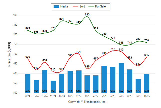 October 2025 Median Price was Neutral, Avg. For Sale Price was Neutral, and Avg. Sold Price was Neutral**