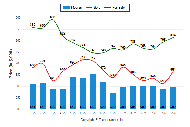 March 2026 Median Price was Neutral, Avg. For Sale Price was Appreciating, and Avg. Sold Price was Neutral**