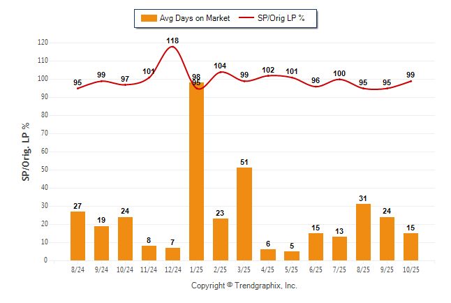 October 2025 Average Days on Market trend Remains Steady and Sold/Original List Price Ratio Remains Steady**