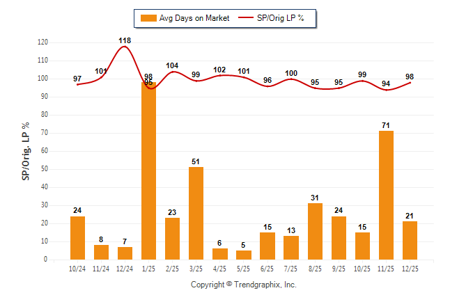 December 2025 Average Days on Market trend Remains Steady and Sold/Original List Price Ratio Remains Steady**