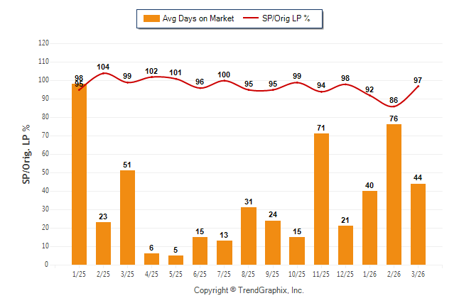 March 2026 Average Days on Market trend Remains Steady and Sold/Original List Price Ratio Remains Steady**