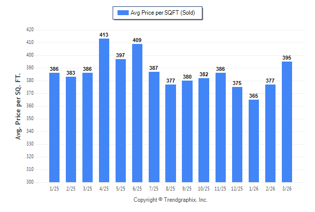 March 2026 Average Sold Price per Square Footage was Appreciating**