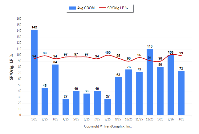 March 2026 Average Continuous Days on Market trend Remains Steady and Sold/Original List Price Ratio Remains Steady**