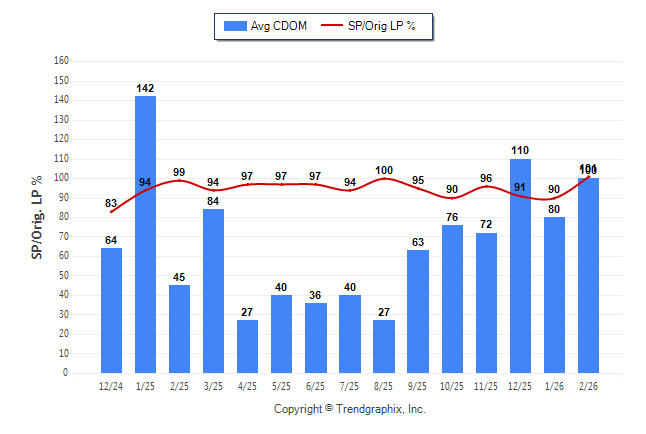 February 2026 Average Continuous Days on Market trend Remains Steady and Sold/Original List Price Ratio Remains Steady**