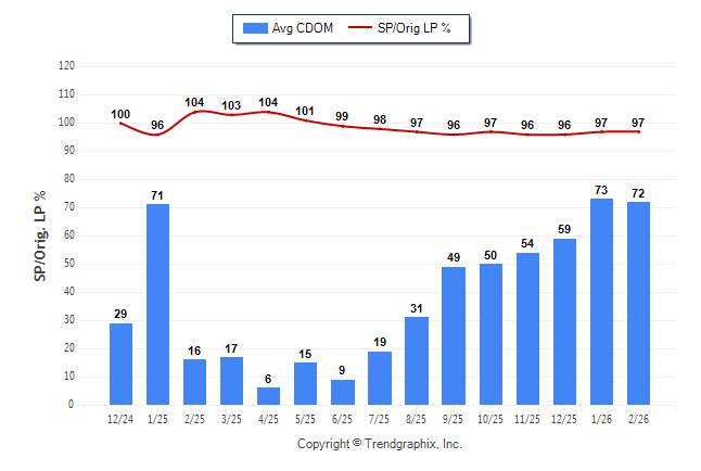 February 2026 Average Continuous Days on Market trend Remains Steady and Sold/Original List Price Ratio was Rising**