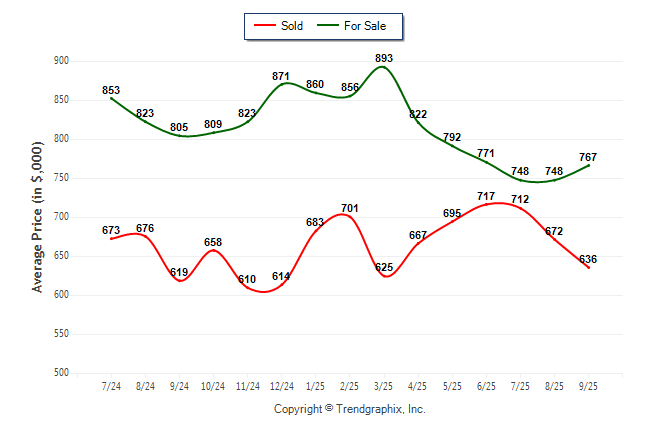 September 2025 Average For Sale Price was Neutral and Average Sold Price was Depreciating**