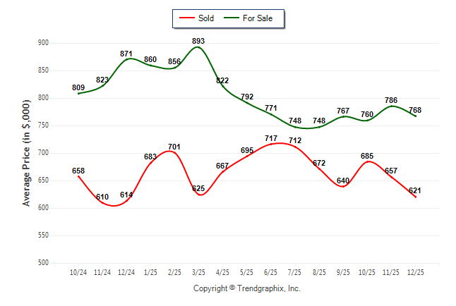 December 2025 Average For Sale Price was Neutral and Average Sold Price was Depreciating**