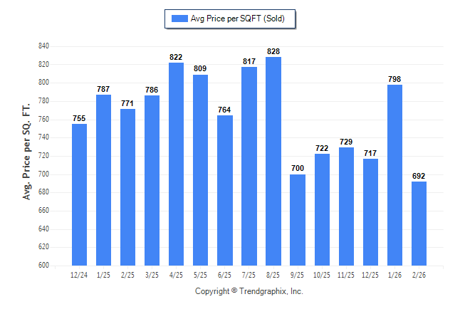February 2026 Average Sold Price per Square Footage was Neutral**