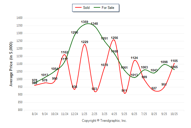 October 2025 Average For Sale Price was Neutral and Average Sold Price was Neutral**