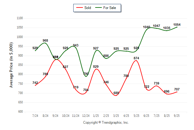 September 2025 Average For Sale Price was Appreciating and Average Sold Price was Neutral**