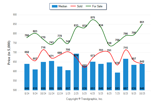 October 2025 Median Price was Neutral, Avg. For Sale Price was Appreciating, and Avg. Sold Price was Depreciating**
