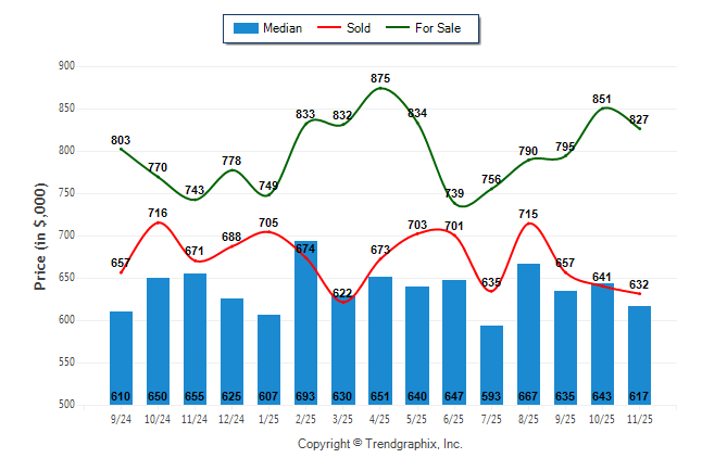 November 2025 Median Price was Neutral, Avg. For Sale Price was Neutral, and Avg. Sold Price was Depreciating**