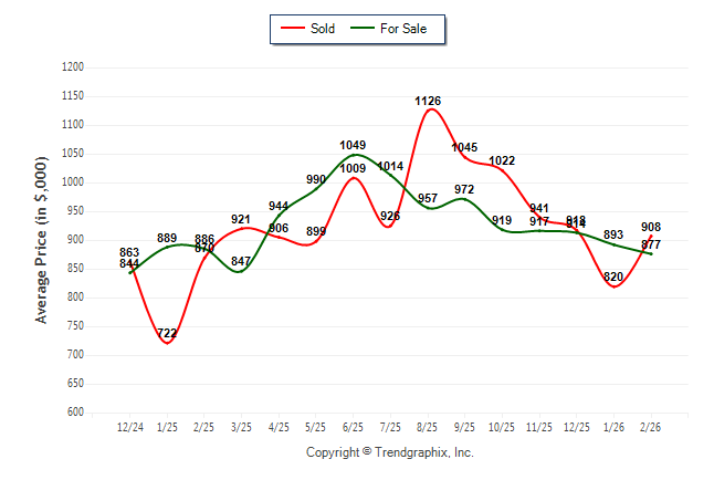 February 2026 Average For Sale Price was Depreciating and Average Sold Price was Neutral**