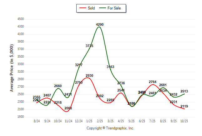 October 2025 Average For Sale Price was Neutral and Average Sold Price was Depreciating**