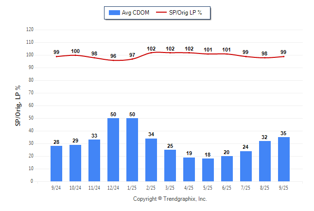 September 2025 Average Continuous Days on Market trend was Rising and Sold/Original List Price Ratio Remains Steady**
