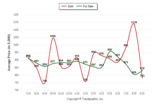 September 2025 Average For Sale Price was Neutral and Average Sold Price was Neutral**