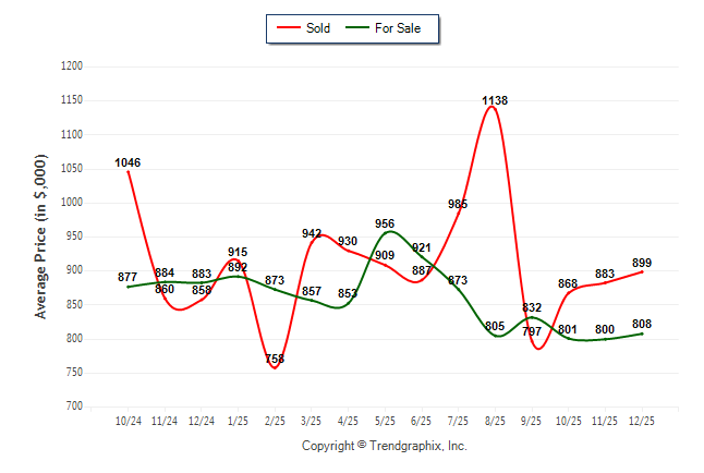 December 2025 Average For Sale Price was Neutral and Average Sold Price was Neutral**