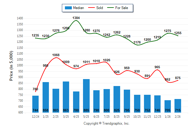February 2026 Median Price was Neutral, Avg. For Sale Price was Neutral, and Avg. Sold Price was Neutral**