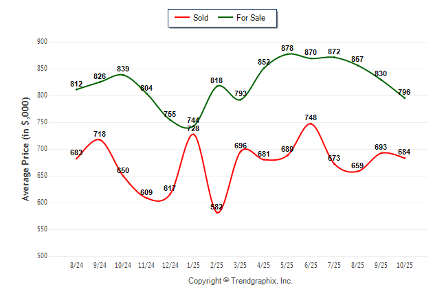 October 2025 Average For Sale Price was Depreciating and Average Sold Price was Neutral**