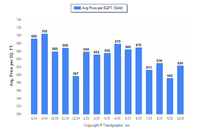 October 2025 Average Sold Price per Square Footage was Neutral**