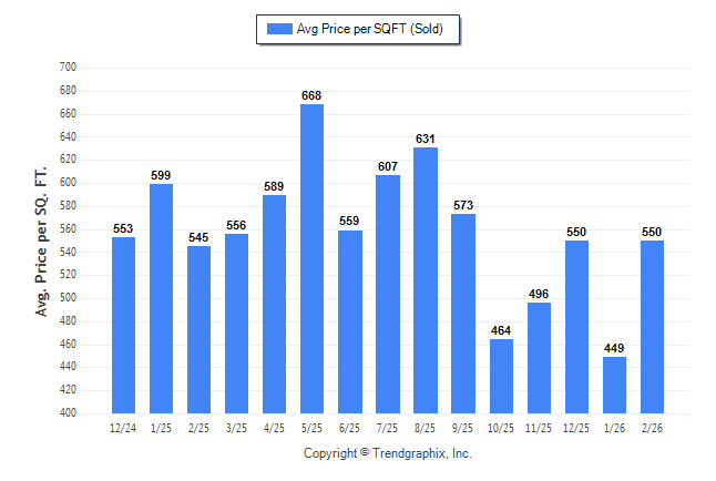 February 2026 Average Sold Price per Square Footage was Appreciating**