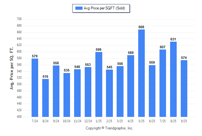 September 2025 Average Sold Price per Square Footage was Depreciating**