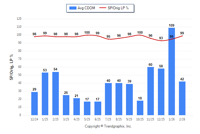 February 2026 Average Continuous Days on Market trend Remains Steady and Sold/Original List Price Ratio Remains Steady**